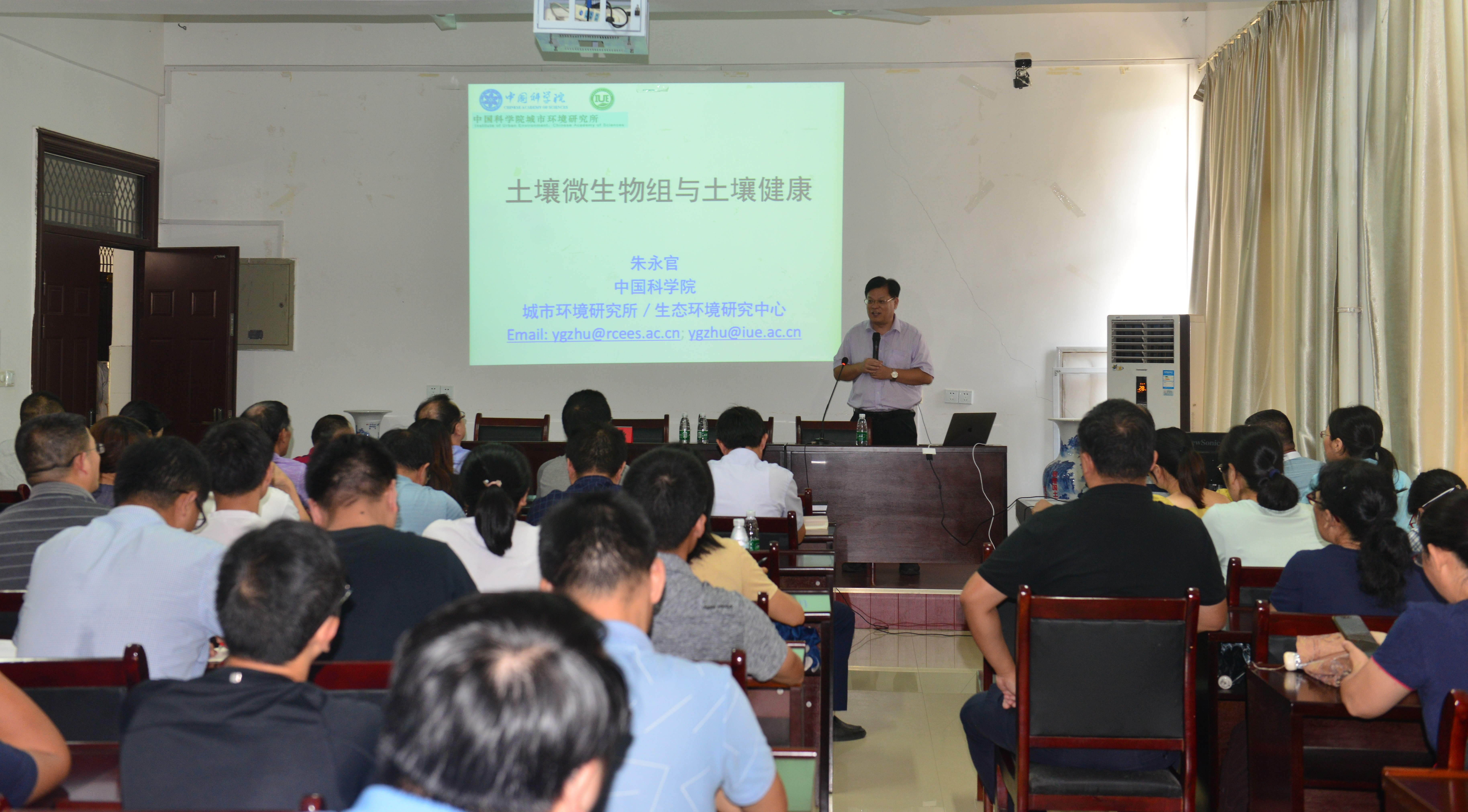 8月27日下午,中國科學院城市環境研究所朱永官院士在國土學院報告廳作題為《土壤微生物組與土壤健康》的學術報告。校長趙小敏校長主持報告會,省地產集團、江西省地礦局912大隊及國土院師生等100多人參加了報告會。