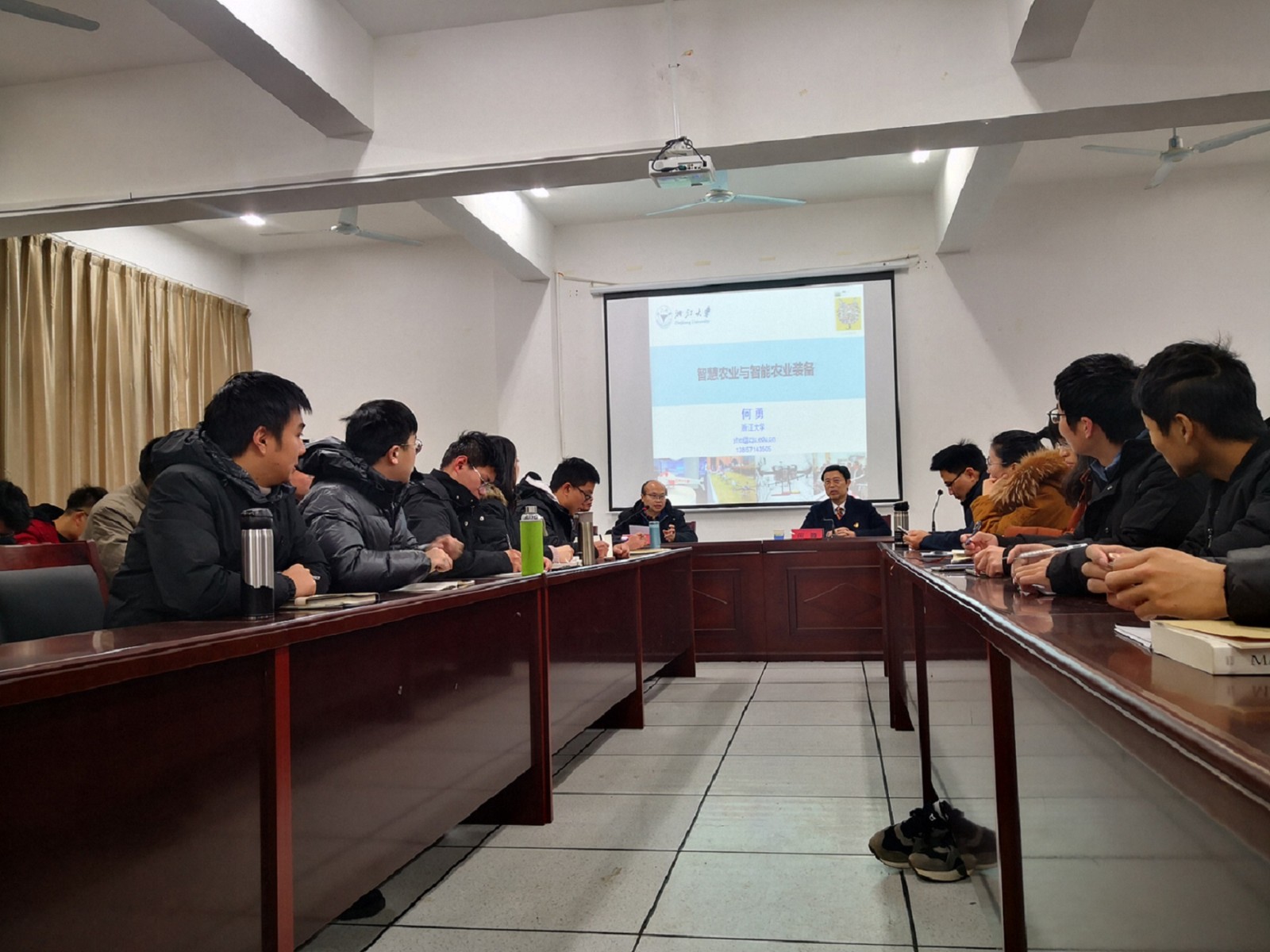 12月31日上午,應工學院邀請,浙江大學生物系統工程與食品科學學院院長、浙江大學農業信息技術研究所所長何勇教授為工學院師生作題為《智慧農業與智能農業裝備》的學術報告,報告會由副校長劉木華教授主持,工學院領導、部分教師及全體在校研究生參加了此次學術報告。