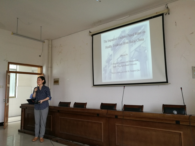 5月13日下午,華南農(nóng)業(yè)大學(xué)教授、博士生導(dǎo)師何勤英教授應(yīng)邀到經(jīng)濟(jì)管理學(xué)院,作題為《中國(guó)農(nóng)村不干凈自來(lái)水對(duì)居民健康的影響》的學(xué)術(shù)報(bào)告。報(bào)告會(huì)由經(jīng)濟(jì)管理學(xué)院副院長(zhǎng)胡凱教授主持,經(jīng)濟(jì)管理學(xué)院師生共100多人聆聽(tīng)了學(xué)術(shù)報(bào)告。