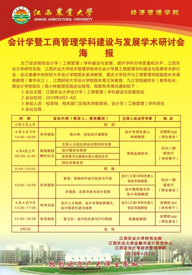 學(xué)術(shù)報(bào)告預(yù)告:會(huì)計(jì)學(xué)暨工商管理學(xué)科建設(shè)與發(fā)展學(xué)術(shù)研討會(huì)