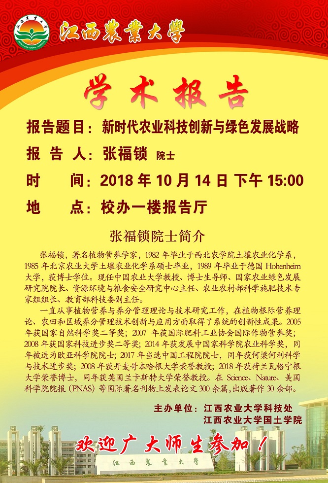 學術報告預告:新時代農業科技創新與綠色發展戰略