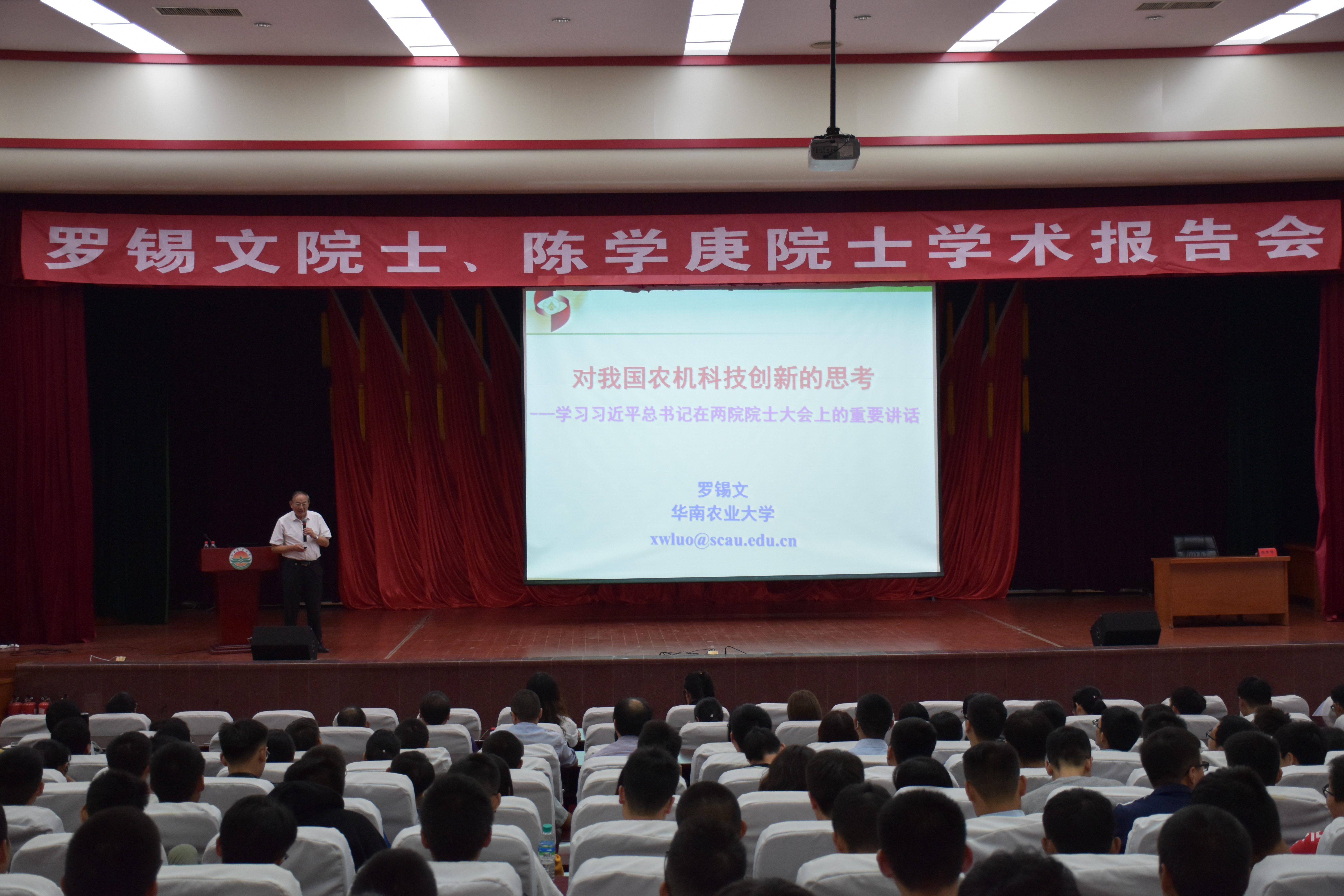 10月9日,中國工程院院士、華南農業大學教授羅錫文和中國工程院院士、石河子大學教授陳學庚來我校進行學術交流。副校長賀浩華,科技處、工學院的負責同志及師生代表參加了學術報告會,報告會由副校長劉木華主持。