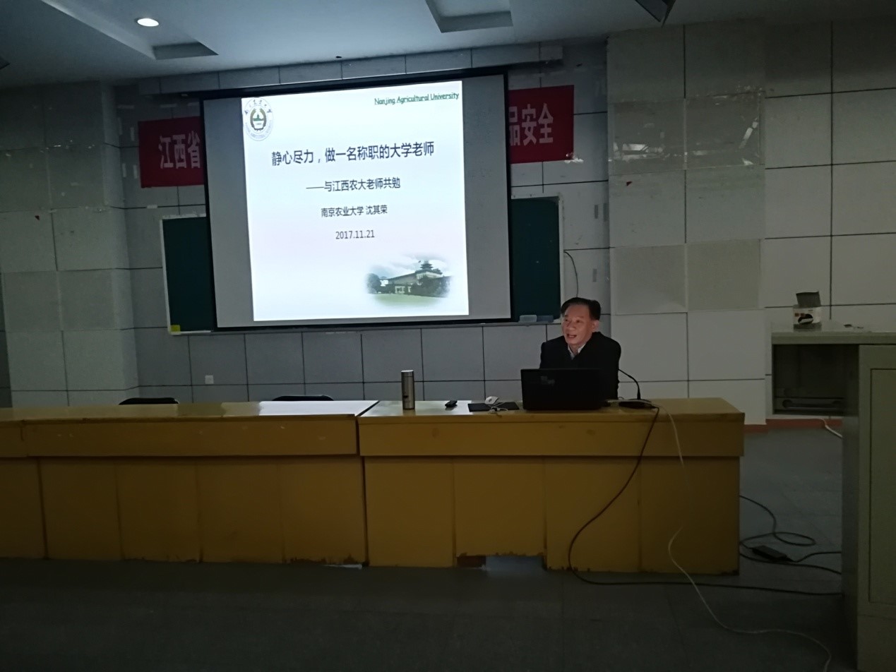 11月21日下午,在我校迎接教育部本科教學(xué)工作審核評(píng)估之際,應(yīng)校長(zhǎng)趙小敏教授的邀請(qǐng),南京農(nóng)業(yè)大學(xué)學(xué)術(shù)委員會(huì)主任、國(guó)家973計(jì)劃首席科學(xué)家、國(guó)家863計(jì)劃現(xiàn)代農(nóng)業(yè)領(lǐng)域主題專家、國(guó)家自然科學(xué)基金委生命學(xué)部專家咨詢委員會(huì)委員沈其榮教授來(lái)我校作題為《靜心盡力,做一名稱職的大學(xué)老師》的專題報(bào)告。相關(guān)學(xué)院的教師150余人一起聆聽(tīng)了報(bào)告。