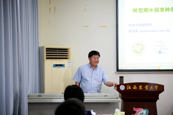 6月2日下午,中國水稻研究所副所長、國家現(xiàn)代水稻產(chǎn)業(yè)技術體系遺傳育種功能實驗室主任胡培松研究員在我校作物生理生態(tài)與遺傳育種重點實驗室作了題為《轉(zhuǎn)型期水稻育種思考》的學術報告。農(nóng)學院相關專業(yè)老師、研究生及本科生約50余人參加了報告會,會議由副校長賀浩華教授主持。
