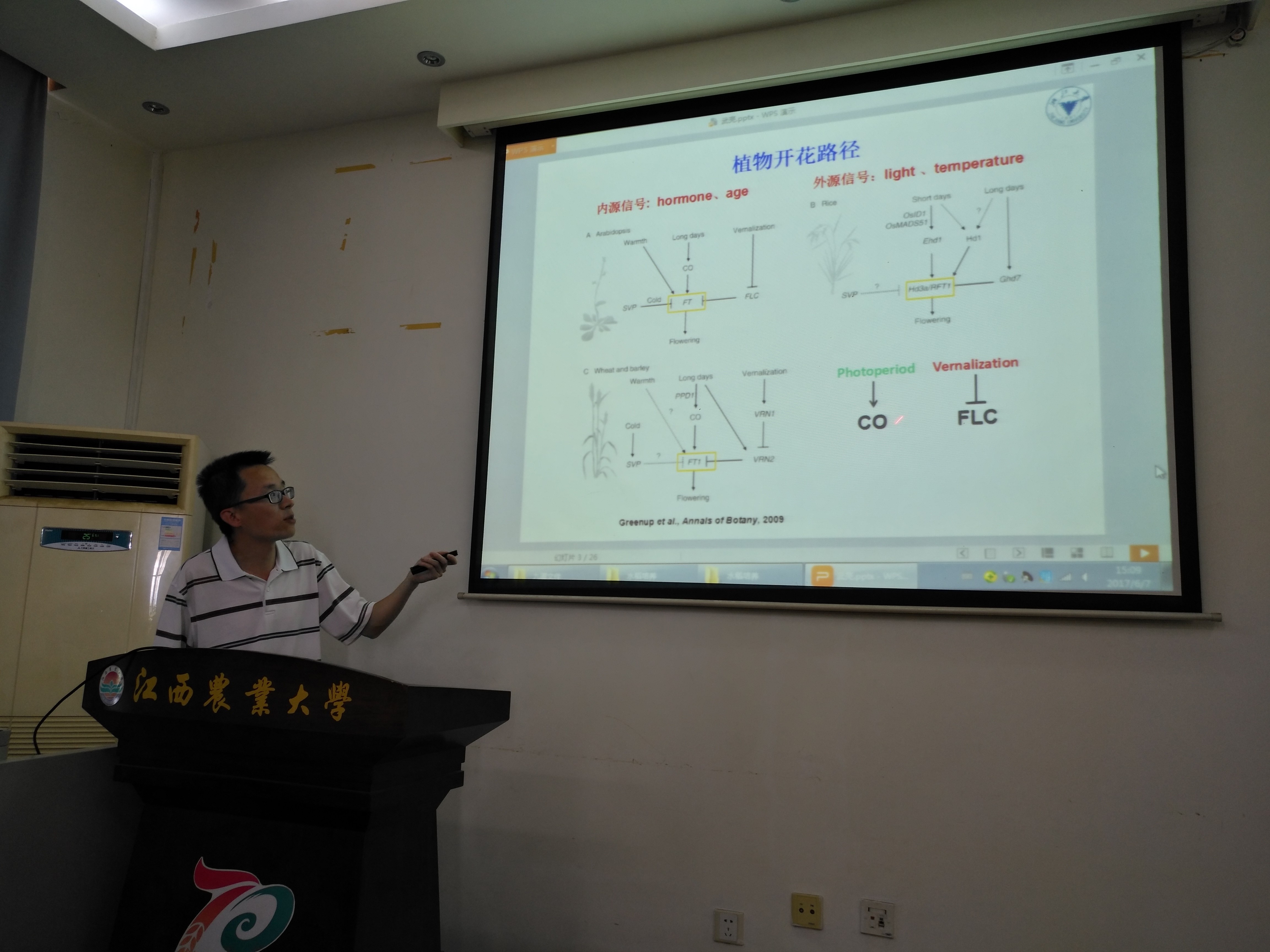 6月7日下午,浙江大學農業與生物技術學院武亮研究員在作物生理生態與遺傳育種重點實驗室作題為《麥類作物開花調控的分子機制》的學術報告。報告由農學院副院長朱昌蘭教授主持,農學院相關專業師生聆聽報告。