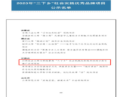 落實好黨建帶團建機制,充分發(fā)揮群團組織橋梁紐帶作用,群團組織的政治性、先進性、群眾性不斷增強。積極構(gòu)建“引領(lǐng)塑新魂、考研促學風、實踐提質(zhì)量、體育健身心、文明促新風”的團學工作格局,開展好“學習二十大、永遠跟黨走、奮進新征程”主題教育活動,推動團員和青年主題教育走深走實,引導廣大青年堅定不移聽黨話、跟黨走。2018—2022年,學院連續(xù)5年獲評校五四紅旗團委,2023年,獲評江西省五四紅旗團委,1名學生獲“中國大學生自強之星”稱號。重視發(fā)揮工會組織作用,2018—2023年,學院分工會先后四次被學校評為“提案組織先進單位”。立足學科特色和優(yōu)勢,增強支撐鄉(xiāng)村振興、服務(wù)經(jīng)濟社會發(fā)展、引領(lǐng)行業(yè)進步的貢獻力。積極構(gòu)建“思政引領(lǐng)+創(chuàng)新實踐+知農(nóng)愛農(nóng)”實踐育人平臺,把農(nóng)業(yè)科技送到生產(chǎn)一線,把田間地頭變成農(nóng)業(yè)科技推廣講堂。五年來,研發(fā)的新技術(shù)新機具試用示范6000余畝,輻射推廣應(yīng)用20余萬畝,組織現(xiàn)場觀摩培訓會30余場次,培訓人員3000人次以上,幫扶新型經(jīng)營主體20余個,幫扶貧困戶21戶,發(fā)放技術(shù)資料10000余冊,多次被中國共青團網(wǎng)、江西日報、江西衛(wèi)視等媒體宣傳報道,贏得良好社會反響。2023年,農(nóng)業(yè)機械化新技術(shù)試用示范與推廣應(yīng)用項目被評為全國“三下鄉(xiāng)”社會實踐優(yōu)秀品牌項目。