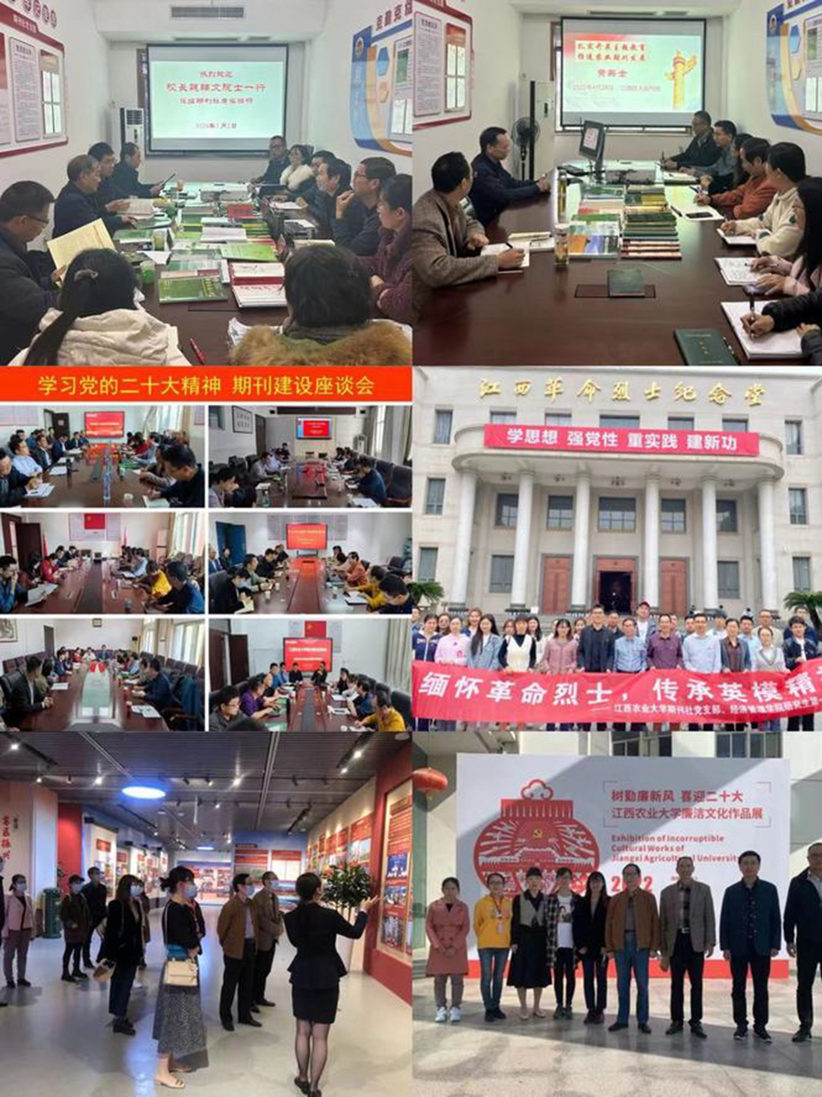 黨支部一貫堅(jiān)持守正創(chuàng)新、克勤克儉,始終堅(jiān)定辦刊政治方向、價(jià)值取向和學(xué)術(shù)導(dǎo)向,嚴(yán)格遵守意識(shí)形態(tài)有關(guān)規(guī)定,堅(jiān)持“三審三校”出版要求,力促質(zhì)量立刊、開放辦刊、科研強(qiáng)刊、人才興刊,助力期刊高質(zhì)量發(fā)展。積極邀請(qǐng)專家開展“期刊意識(shí)形態(tài)問題” “編校方法與質(zhì)量提升”等專題講座,加強(qiáng)期刊數(shù)字化出版,促進(jìn)刊媒融合發(fā)展,強(qiáng)化業(yè)務(wù)培訓(xùn),進(jìn)一步提升期刊編輯科學(xué)把握意識(shí)形態(tài)的工作能力和編輯業(yè)務(wù)能力。開拓進(jìn)取,攻堅(jiān)克難,加大業(yè)界交流,擴(kuò)大話語權(quán)、爭(zhēng)取影響力,爭(zhēng)創(chuàng)業(yè)界榮耀。2018年以來,期刊社成員當(dāng)選中國(guó)高校科技期刊研究會(huì)常務(wù)理事兼全國(guó)農(nóng)業(yè)期刊專委會(huì)副主任、中國(guó)農(nóng)業(yè)期刊網(wǎng)編輯委員會(huì)副主任、全國(guó)高校文科學(xué)報(bào)研究會(huì)理事、江西省期刊協(xié)會(huì)副會(huì)長(zhǎng)等,并多次被業(yè)界邀請(qǐng)做專題講座,有效提升三刊知名度。