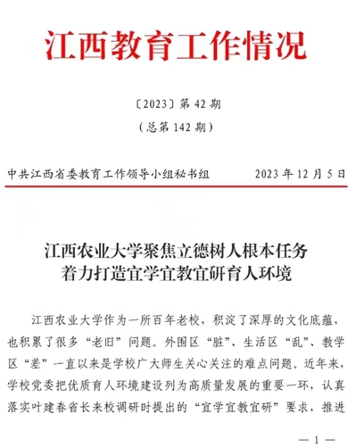 建設重點項目,改善辦學基礎條件。學校建筑年代久遠,基礎設施較為薄弱,改建、擴建、新建重點項目是改善辦學條件、改觀校園面貌的重要基礎。學校高度重視校園建設工作,集聚資源集中力量辦大事,校園建設處統籌工程建設的安全、質量、進度、品質和工藝等要素,以倒計時的緊迫感,推動完成一系列重大重點建設項目。完成豬遺傳改良與種質創新全國重點實驗室、南大門、東大門、東校區北門、科技大樓、新圖書館、保育院擴建、教學樓維修改造、道路“白改黑”、改建羽毛球館、新建門球場及運動場、電力增容改造、校園外圍圍墻建設、芭茅嶺拆除地塊及周邊提升改造、新建志敏大道及強農路輔道、“雨污分流”及地下管網改造、新農貿市場建設、共45棟學生宿舍樓全面維修改造及各學院實驗實訓基地等重大重點工程150余項,積極推進國家種豬資源中心安義基地建設,啟動豬-狒狒異種移植產教融合實訓基地、保護生物學科研教學基地、西大門及周邊道路建設等項目建設審批程序。重點項目涵蓋科研平臺、教學條件、實訓基地、校園環境、基礎設施、民生保障等各領域,為滿足學校高質量發展要求和師生高品質生活需求,提供了良好的基礎條件保障。