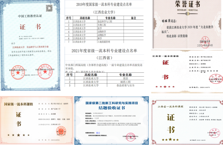 發(fā)揮特色優(yōu)勢,建設一流專業(yè)學院積極響應新工科建設理念,致力于培養(yǎng)食品行業(yè)的卓越人才,專業(yè)建設取得了長足的發(fā)展,先后承擔省級以上教學研究課題30余項、校級教學研究項目60余項,連續(xù)獲得教育部首批與第二批新工科建設項目;獲校級以上教學成果獎12項;《畜產品加工學》遴選為第二批國家級線上線下混合式一流本科課程,《果蔬貯藏加工學》、《食品分析與檢測技術》、《食品工程原理》、《食品生物化學》和《食品微生物學》等課程遴選為省級一流本科課程;江西特色優(yōu)質稻米質量安全控制、山茶油油脂精煉虛擬仿真實驗教學項目被認定為省級虛擬仿真實驗教學項目。2022年農產品加工及貯藏工程教學團隊遴選為省級高水平本科教學團隊,江西省農產品貯藏加工工程實驗教學示范中心順利通考核;專業(yè)建設了校內糧油食品加工實訓基地、畜產品加工實訓基地、水產品加工實訓基地,并與南昌雙匯食品有限公司、益海嘉里(南昌)糧油食品有限公司等20余家單位和企業(yè)共建了實習基地,夯實人才培養(yǎng)平臺。食品科學與工程專業(yè)先后遴選為江西省“十三五”和“十四五”一流特色專業(yè),2019年入選國家級一流本科專業(yè)建設點,2022年通過國際工程教育專業(yè)認證,成為全校首個順利通過工程教育專業(yè)認證的專業(yè)。食品質量與安全專業(yè)2021年入選省級一流本科專業(yè)建設點。專業(yè)高質量發(fā)展為本科教學質量提升、教書育人奠定了堅實的基礎。