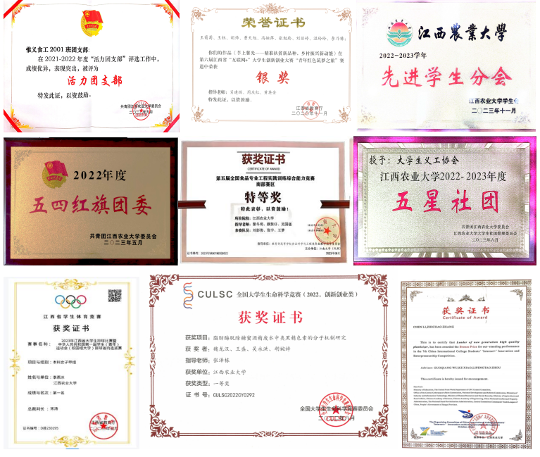 服務學生成長,強化立德樹人。學院以黨建帶團建,加強紅色文化學習教育,弘揚主旋律,提升學生愛黨、愛國、愛校熱情,涌現了江西省三好學生、江西省高校畢業(yè)生基層就業(yè)典型、江西省大學生年度人物、“江農之星”大學生年度人物等學生先進典型。學院連續(xù)5年入圍全校新生黨團基本知識競賽決賽,多次榮獲校“五四紅旗團委”稱號,惟義食工2001團支部以第三名的成績榮獲2022年度江西省高校“活力團支部”最具組織力稱號,入選全國高校“活力團支部”最具組織力TOP100榜。注重實踐育人,依托掛靠學院團委的義工協(xié)會積極開展大學生志愿服務活動,榮獲南昌市“先進慈善義工組織”、江西農大“最美志愿服務組織”、江西農大“五星級社團”等稱號。認真組織大學生志愿者開展“三下鄉(xiāng)”社會實踐活動,多次榮獲省、校級“三下鄉(xiāng)”優(yōu)秀營隊和優(yōu)秀個人榮譽,得到中國文明網、人民網、中國江西網、江西志愿服務網、贛青團學等媒體的廣泛報道。學院重視大學生創(chuàng)新創(chuàng)業(yè)工作,師生團隊榮獲全國食品專業(yè)工程實踐訓練綜合能力競賽南部賽區(qū)特等獎1項,一等獎1項、全國大學生生命科學競賽一等獎1項,三等獎1項,“互聯網+”大學生創(chuàng)新創(chuàng)業(yè)大賽中獲國獎1項、省獎2項,“挑戰(zhàn)杯”江西省大學生課外學術科技作品競賽銅獎1項。