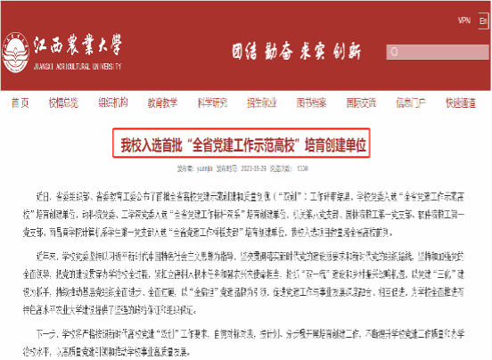 通過不懈努力,學校黨建“三化”建設取得明顯成效。召開了全省高校首次基層黨建“三化”建設觀摩推進會,建成了全省高校首個黨建信息化指揮平臺,調整優化了45個基層黨組織,實現了專任教師黨支部書記“雙帶頭人”和全校標準化黨員活動室“兩個全覆蓋”。“金扁擔”黨建品牌影響力輻射力不斷增強。南昌大學等30多家省內外單位先后來校學習借鑒品牌創建經驗,動科院“12365”、工學院“匠心琢玉”、農學院“鐵肩膀”黨建子品牌創新發展的格局初步形成。黨建“雙創”攻堅行動進展順利。學校黨委獲批成為全省首批黨建工作“示范高校”培育創建單位,累計獲批全國黨建工作“樣板支部”培育創建單位4個,全省黨建工作“標桿院系”培育創建單位2個、“樣板支部”培育創建單位4個。此外,實化基層黨組織書記抓黨建述職評議考核工作、深化“黨建聯建共建”活動、固化半年黨建工作督查機制,有力推動履行“第一責任”、踐行“第一使命”,黨組織的政治功能和組織功能不斷增強。
