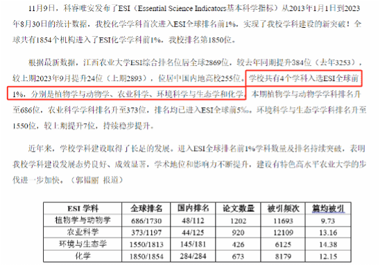 第三次黨代會以來,廣大黨員靠前站、主動上、帶頭干,全校上下齊心協力、綿綿用力、持續努力,學校事業發展迎來翻天覆地的變化,取得了系列成就。科學研究有新的重大進展,在國際著名學術期刊《Nature》(《自然》)發表了迄今為止江西省和中國畜牧學領域的首篇研究長文;斬獲了江西省科學技術進步獎特等獎;推出了江西省1999年至今24年來國家審定的第一個畜禽新品種。人才引育有新的重大突破,全職引進中國科學院院士、國家優青各1名;自主培養特殊支持計劃青年拔尖人才1名;引進培育國務院政府特殊津貼專家及省“雙千計劃”人才、“贛鄱俊才支持計劃”人才等多名。教育教學有新的重大收獲,1項教學成果榮獲全國教學成果獎二等獎;1個教學團隊入選“黃大年式”教學團隊;1個教師團隊榮獲全國高校教師教學創新大賽一等獎;本科生考研升學率逐年升高2023年達到34.27%。學科發展有新的重大提升,4個學科進入ESI全球前1%;4個“十三五”省一流學科繼續入選“十四五”省一流學科且在全國第五輪學科評估中提檔升級;新增博士后流動站3個。社會服務有新的重大平臺,繼續實施“一村一名大學生”工程、科技特派團;打造科技小院等新模式,打通科技服務“最后一公里”。校園治理有新的重大改善,方志敏隧道建成通車、南北校區連成一體;校中“三家村”完成歷史性整體搬遷;“老舊小區”改造一期工程順利完成、二期工程全面推進。