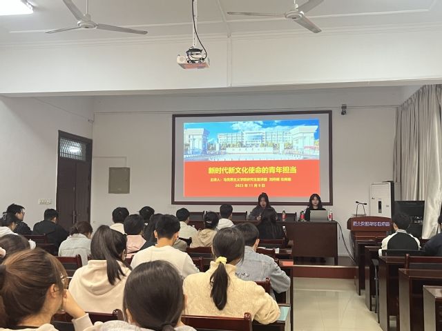 為深入學習貫徹習近平文化思想,進一步堅定文化自信,11月9日晚,馬克思主義學院習近平新時代中國特色社會主義思想研究生宣講團應邀赴國土資源與環境學院開展宣講。宣講團成員劉丹妮、左尚瑜以《新時代新的文化使命的青年擔當》為題作宣講。國土資源與環境學院學生干部90余人在現場聽講。
