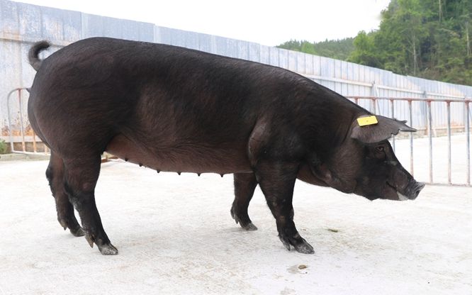 郭源梅表示,山下長黑新品種主要生產(chǎn)性能已接近長期選育的外來第一父本長白豬,它的肉質性狀遠遠超過了長白豬,為優(yōu)質肉豬的生產(chǎn)提供了一個非常適合做第一父本的黑豬品種。