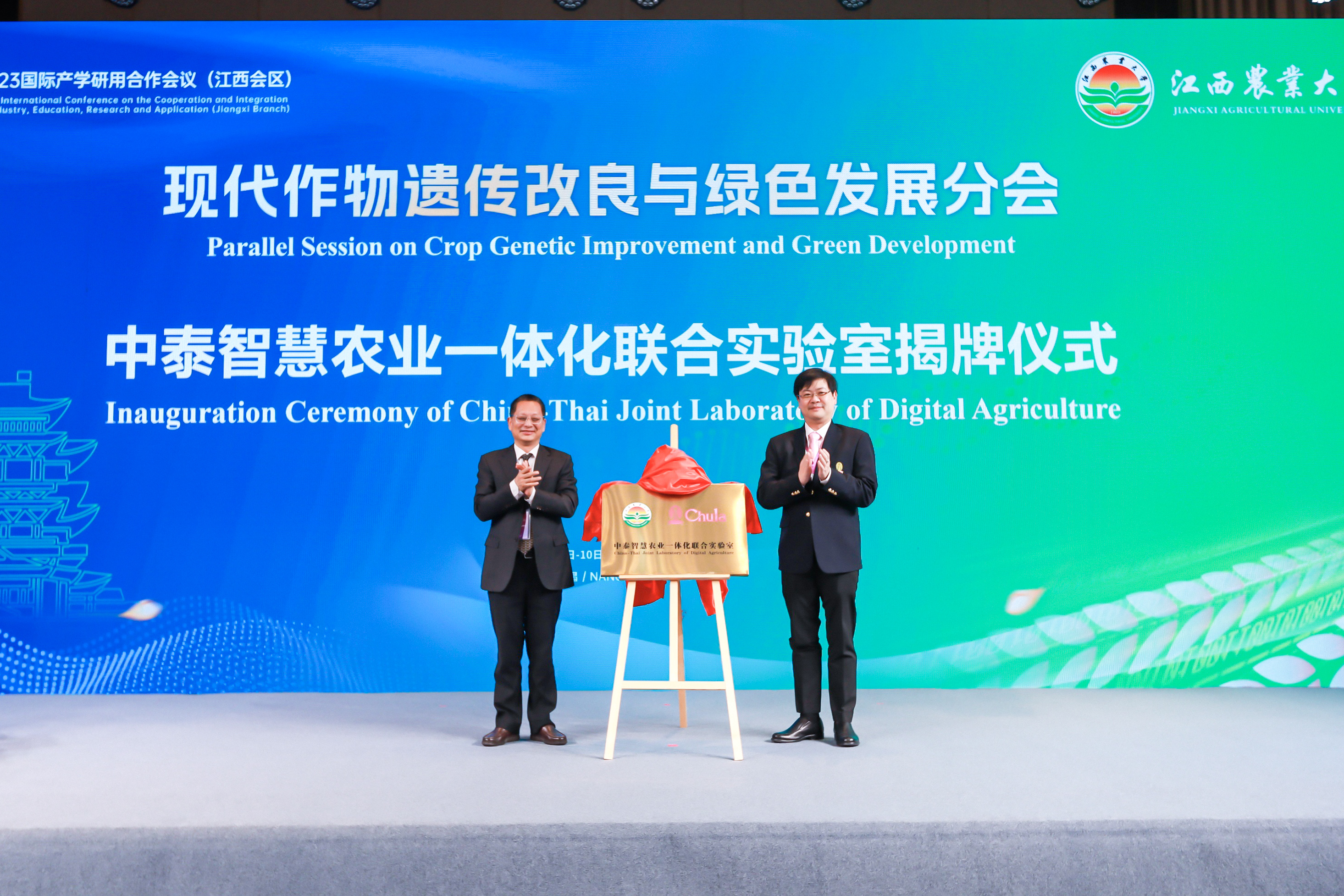 雷杰華和魏輔文分別在開幕式致辭,賀浩華與泰國朱拉隆功大學(xué)Thiti Bovornratanaraks副教授為“中泰智慧農(nóng)業(yè)一體化聯(lián)合實(shí)驗(yàn)室”揭牌,參會(huì)嘉賓還為我校10個(gè)研究生創(chuàng)新基地暨專業(yè)學(xué)位研究生實(shí)踐基地、9個(gè)產(chǎn)教融合基地舉行了授牌。