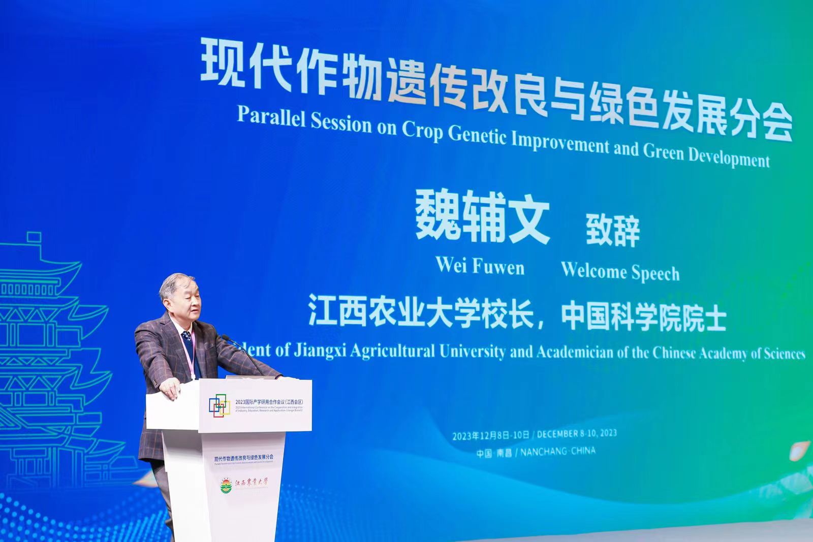 12月8日至10日,2023國際產(chǎn)學(xué)研用合作會(huì)議(江西會(huì)區(qū))——現(xiàn)代作物遺傳改良與綠色發(fā)展合作會(huì)議召開。會(huì)議由教育部學(xué)校規(guī)劃建設(shè)發(fā)展中心、江西省教育廳主辦,我校教育部多熟制作物遺傳改良國際合作聯(lián)合實(shí)驗(yàn)室、教育部作物生理生態(tài)與遺傳育種重點(diǎn)實(shí)驗(yàn)室承辦,江西省現(xiàn)代作物種業(yè)科技創(chuàng)新聯(lián)合體、江西省作物學(xué)會(huì)、《江西農(nóng)業(yè)大學(xué)學(xué)報(bào)》編輯部、《生物災(zāi)害科學(xué)》編輯部共同協(xié)辦。