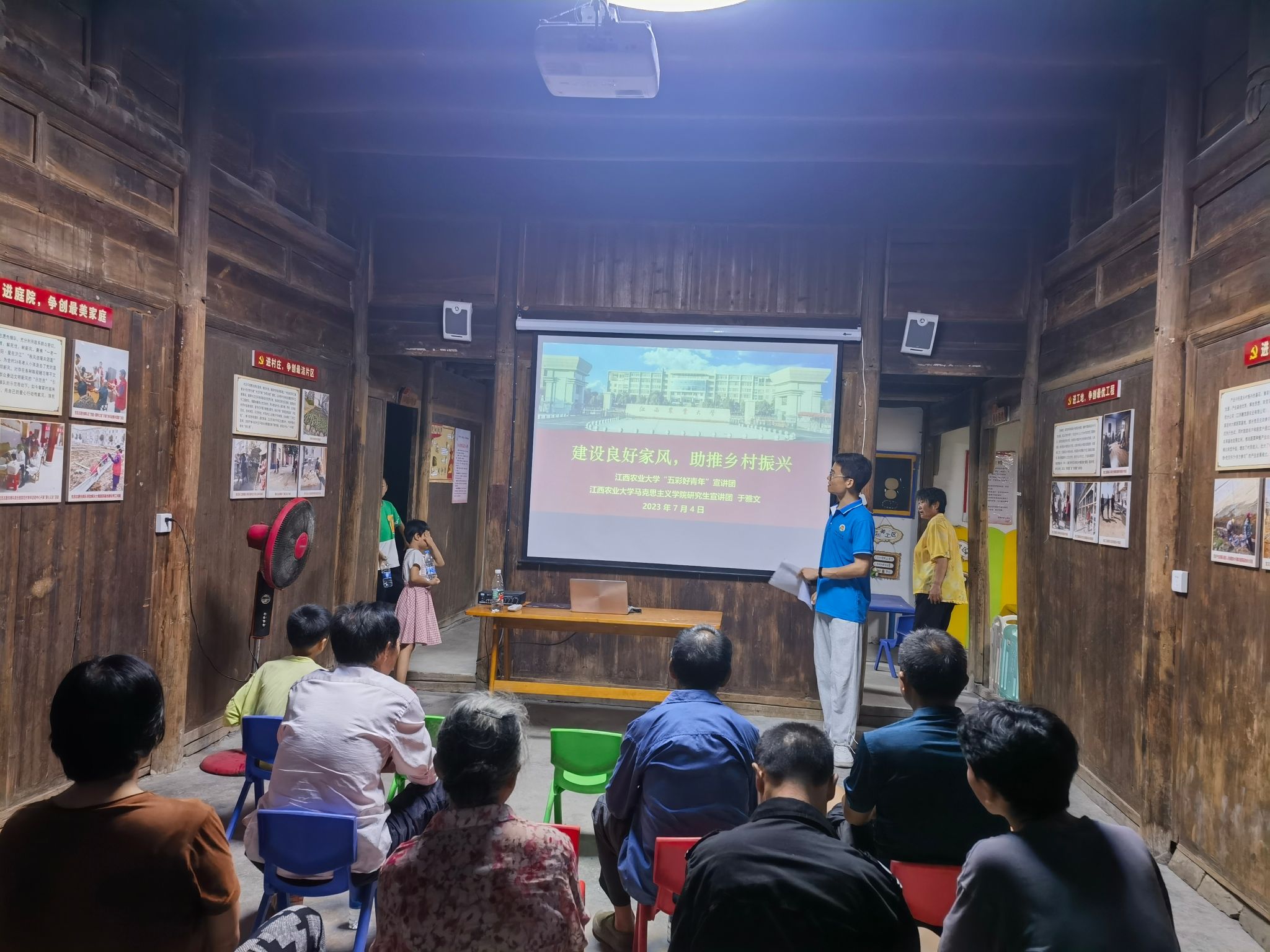 宣講團(tuán)緊密將黨的創(chuàng)新理論宣講與自身實(shí)踐鍛煉相結(jié)合,讓理論宣講既“接天線”又“接地氣”。宣講團(tuán)成員于雅文社會(huì)實(shí)踐期間在新干縣沂江鄉(xiāng),以《習(xí)近平的家風(fēng)故事》為小切口,講述了習(xí)近平總書記關(guān)于家風(fēng)建設(shè)的重要論述,通過進(jìn)村入戶的宣講方式號(hào)召大家以良好家風(fēng)建設(shè)助推鄉(xiāng)村振興。宣講團(tuán)成員徐嘉玲,暑期“三下鄉(xiāng)”社會(huì)實(shí)踐來到紅軍長(zhǎng)征先遣第一村——遂川縣橫石,在宣講前印制好紅色教育宣傳冊(cè)進(jìn)行分發(fā),向當(dāng)?shù)卮迕瘛⒂慰烷_展“零距離”面對(duì)面宣講。朱惠玲在奉新獼猴桃科技小院實(shí)習(xí)期間,以《實(shí)現(xiàn)中華民族偉大復(fù)興是近代以來中華民族最偉大的夢(mèng)想》為題向園藝2002班全體同學(xué)開展宣講,號(hào)召同學(xué)深入學(xué)習(xí)習(xí)近平總書記給中國(guó)農(nóng)業(yè)大學(xué)科技小院的學(xué)生重要回信精神,積極練就興農(nóng)本領(lǐng),為實(shí)現(xiàn)中華民族偉大復(fù)興貢獻(xiàn)青春力量。