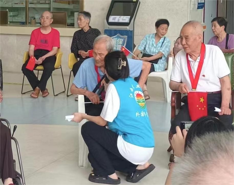 宣講團(tuán)成員黃道文,在南昌縣塘南鎮(zhèn)實(shí)踐期間了解到當(dāng)?shù)赜泻芏嗔羰貎和槍?duì)留守兒童行為習(xí)慣、安全意識(shí)有待引導(dǎo)加強(qiáng)的實(shí)際需求,她組織留守兒童在當(dāng)?shù)刂袑W(xué)集中開展了安全、法治、道德等宣傳教育,并以“書信”方式與個(gè)別缺乏關(guān)愛的孩子建立聯(lián)系,引導(dǎo)其樹立正確三觀,扣好人生第一粒扣子。艾雨菲在南昌市紅谷灘區(qū)天同頤養(yǎng)院開展志愿服務(wù)期間,了解到很多爺爺奶奶是共產(chǎn)黨員,便同他們暢聊起“偉大建黨精神”,暢聊中很多老黨員不自覺分享起自身的入黨經(jīng)歷和奮斗故事,感人故事引起眾人深深共鳴。李雪倩在暑期在大余縣南方紅軍三年游擊戰(zhàn)爭(zhēng)紀(jì)念館參觀時(shí),發(fā)現(xiàn)館內(nèi)矗立著方志敏同志雕像,基于對(duì)其生平的了解,便主動(dòng)向游客和同學(xué)進(jìn)行現(xiàn)場(chǎng)講解,并帶領(lǐng)大家誦讀《可愛的中國(guó)》節(jié)選,引發(fā)游客頻頻觀望。