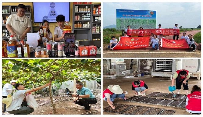 科技小院厚植愛農情懷。“科技小院在打通農技推廣‘最后一公里’上發(fā)揮了巨大作用” ,上高縣曾家村黨支部負責人欣喜地說道。在上高水稻科技小院,營隊的同學們參加了小院導師和研究生的科技支農服務;在奉新獼猴桃科技小院,隊員們協(xié)助導師開展了農技培訓,在種植基地進行了除草和疏果勞動;在瑞昌黑芝麻科技小院,指導老師在田間為同學們講解了黑芝麻種植關鍵技術,企業(yè)負責人帶領同學們參觀了生產車間和產品展廳,同學們走進線上平臺開展了直播帶貨助力特色農產品銷售活動。