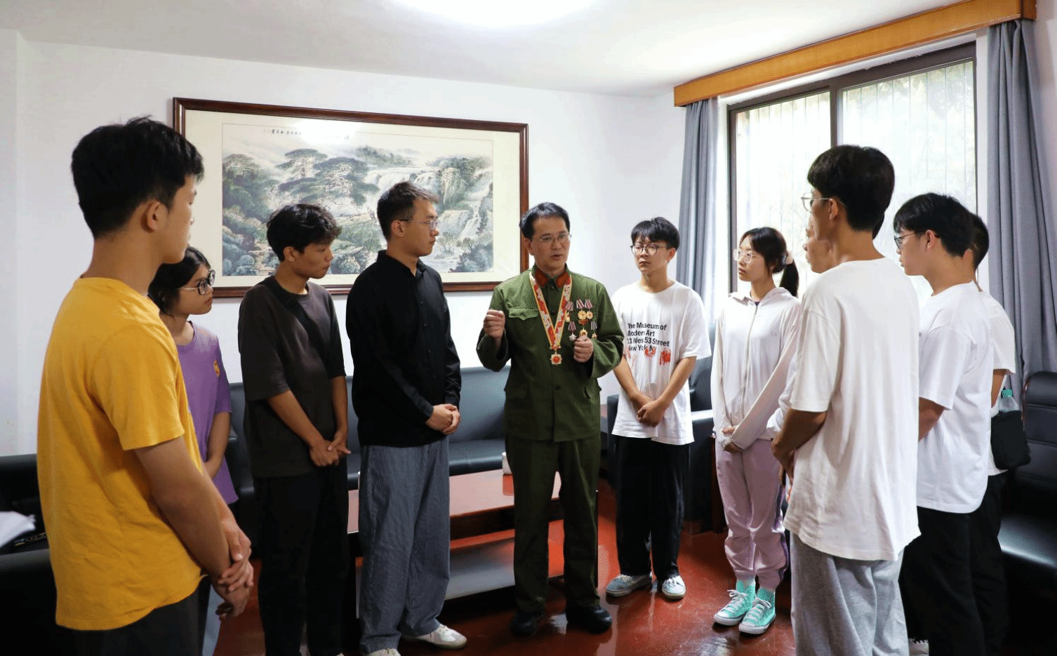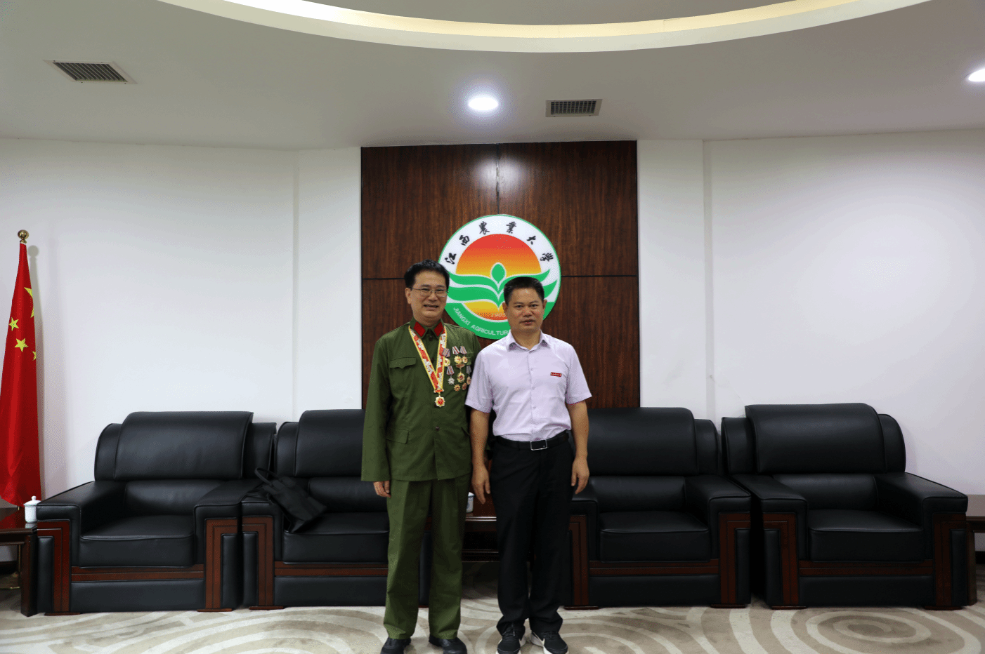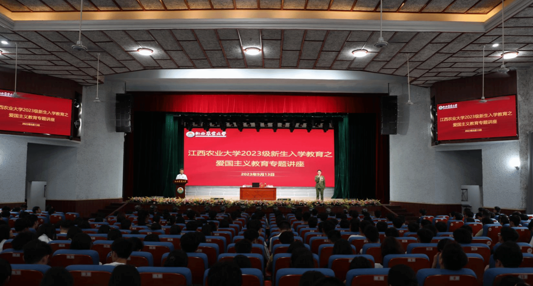 為加強(qiáng)學(xué)校愛國主義教育,進(jìn)一步豐富新生入學(xué)教育內(nèi)容,培養(yǎng)青年學(xué)生的家國情懷,引導(dǎo)學(xué)生傳承紅色基因,激發(fā)愛國熱情,9月13日,學(xué)校特別邀請了全軍“社會主義精神文明建設(shè)先進(jìn)個人”、“捕俘英雄”、江西省新四軍歷史研究會副會長兼秘書長王健根來校做《用信念支撐起人生脊梁》的專題報告,我校各學(xué)院2023級學(xué)生代表、教師代表、新生軍訓(xùn)教官代表、退役大學(xué)生士兵代表、部分有意愿參軍入伍學(xué)生等共計1000余人參加了此次報告。講座開始前,校黨委副書記蔡海生和王健根進(jìn)行了親切交流。