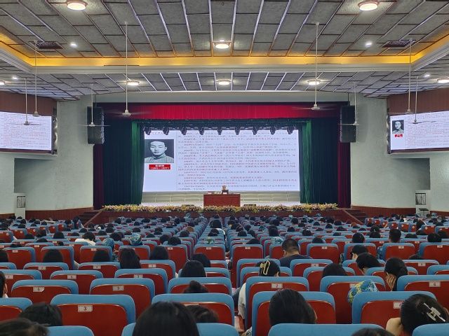 9月26日,外國語學院舉辦紅色主題黨課,南昌師范學院副院長周毛春應邀以《從革命先輩的英雄事跡看共產黨人的初心使命》為題,為師生們授課。外國語學院80余名教師及840名學生到場聆聽。