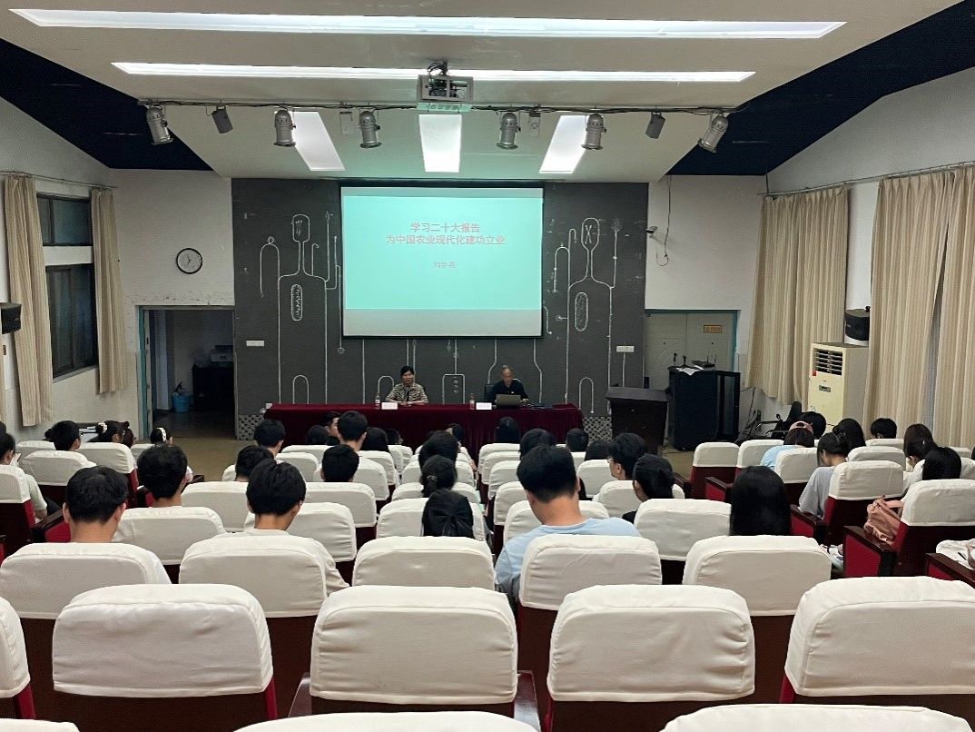 526日晚,生物科學與工程學院開展黨的二十大精神宣講,學校“金扁擔”宣講團成員劉步英應邀作《學習二十大報告,為中國農業現代化建功立業》專題報告,學院黨委負責人、各學生黨支部書記、支部委員和學生黨員、發展對象參加了學習。