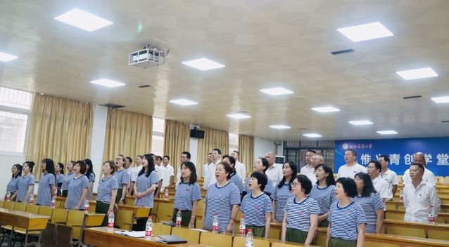 隨后全體職工精神飽滿地演唱了紅色經典歌曲《南泥灣》,用歌聲唱出了對祖國的熱愛,展現了新時代黨員凝心聚力、團結奮進的精神風貌。大家紛紛表示,將時刻牢記自己是一名光榮的共產黨員,從紅色歌曲中感悟信仰力量,以更加飽滿的熱情投入到今后工作中,為學校的高質量發展貢獻力量。