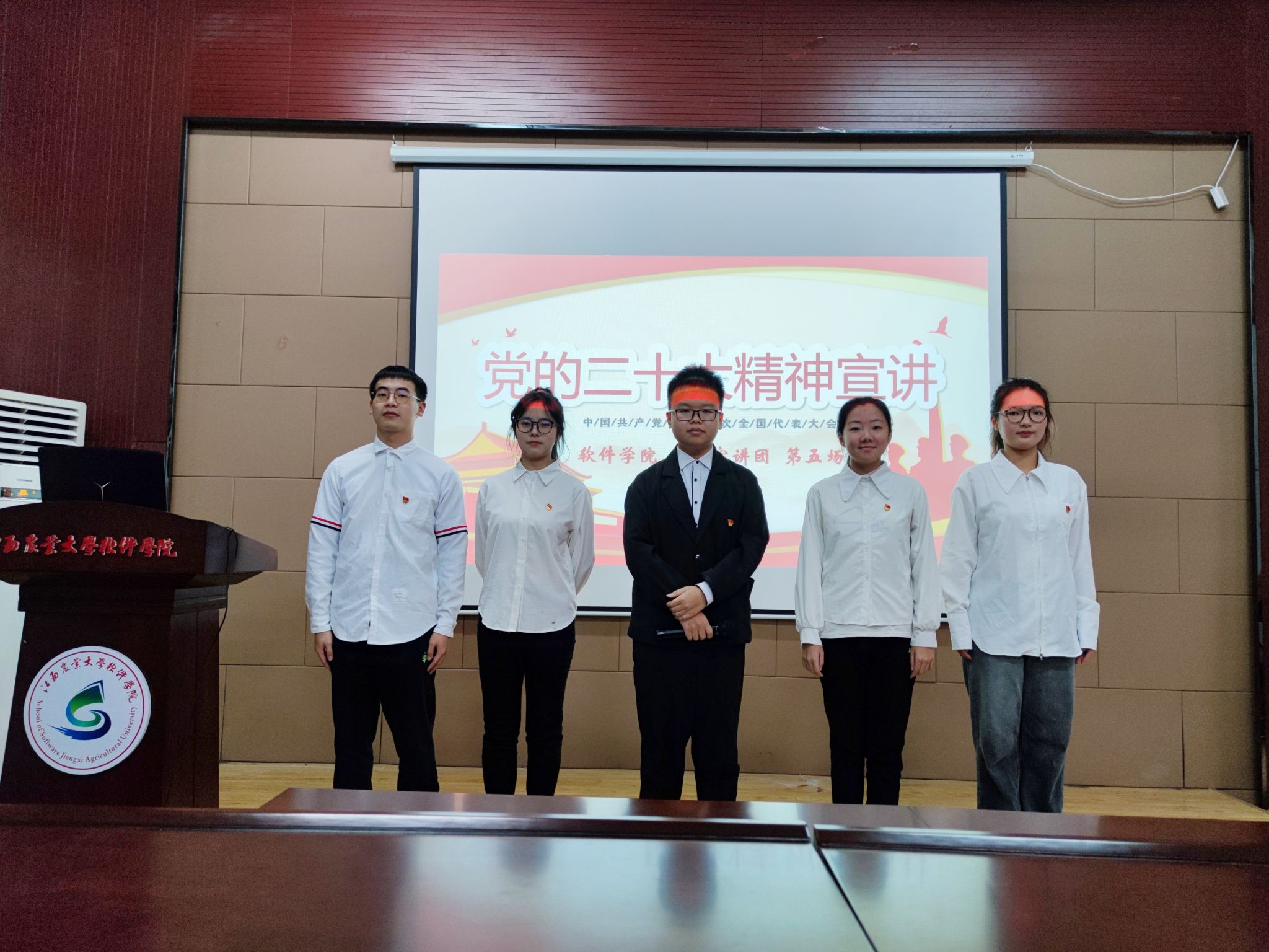 為深入學習宣傳貫徹黨的二十大精神,扎實開展學習貫徹習近平新時代中國特色社會主義思想主題教育,推動黨的創新理論“飛入尋常百姓家”,5月23日 ,軟件學院“紅碼”宣講團在科技報告廳面向青年學生開展黨的二十大精神宣講,2023年上半年新發展的入黨積極分子和發展對象參加報告會。