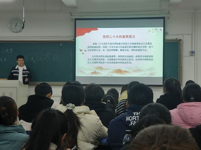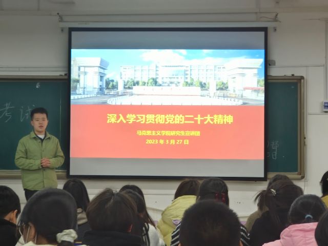 為深入學習宣傳貫徹黨的二十大精神,推動青年學子學深悟透,持續筑牢理想信念,3月27-28日,馬克思主義學院習近平新時代中國特色社會主義思想研究生宣講團受邀在林學院本科生及研究生黨員中開展了2場黨的二十大精神宣講。林學院/園林與藝術學院學生黨員近350人在現場聆聽宣講。
