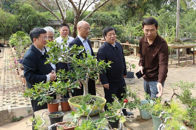 孫菊生一行首先來到豬遺傳改良與養殖技術省部共建國家重點實驗室研究,聽取學校一流學科建設、豬遺傳改良與國家重點實驗室研究進展、研究展望等方面情況匯報,實地察看“三家村”原鄭家、原朱家搬遷地塊及我校花卉盆景基地。