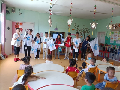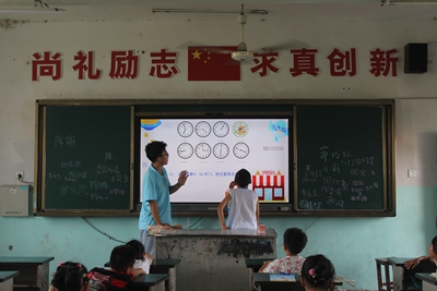 連續15年為當地貧困留守兒童開展愛心支教活動的外語院暑期三下鄉志愿服務營隊,今年再次來到南昌縣塘南鎮。志愿者們招收一至六年級留守小學生120余人,他們發揮專業特色,開設“朗讀者,塘南之聲 ” “Go for it”“follow me ”“數字王國”等專業課堂,為農民工子女及留守兒童帶去關愛。