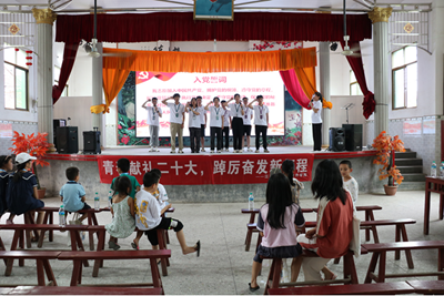 7月2日,南昌市高新區麻丘鎮厚溪村村民活動中心傳來陣陣嘹亮的歌聲,化材學院聯合厚溪村開展了以“青春獻禮二十大·黨史紅歌遍田野”為主題的暑期“三下鄉”社會實踐活動。小朋友們走上舞臺,講述黨史故事,唱響紅色歌謠,在心中種下“童心向黨”的種子。