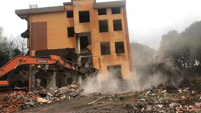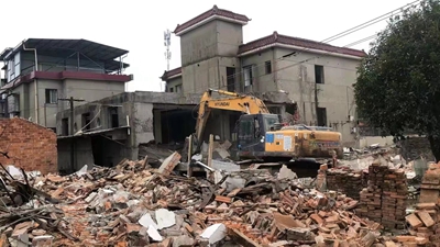 黎家房屋建筑逐步拆除(周國平、袁甲/攝)。