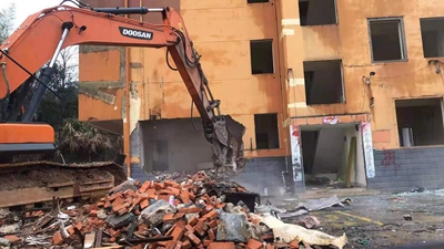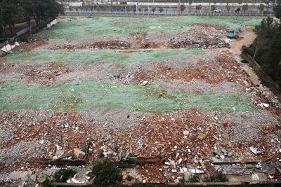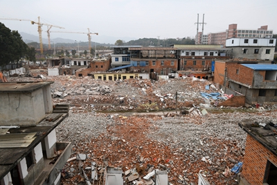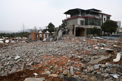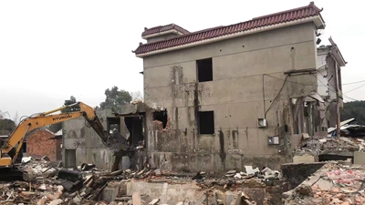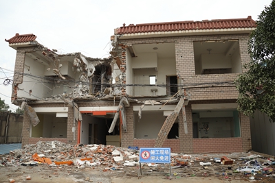 鄭家房屋建筑逐步拆除(周國平、袁甲/攝)。
