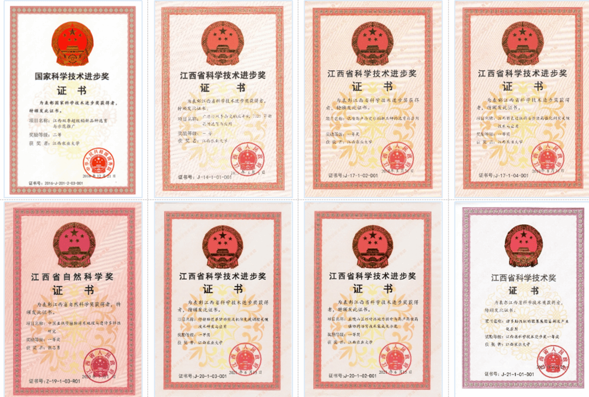 技術研發取得重大突破,關鍵核心技術達到領先水平。長期以來,黃路生院士團隊聚力攻克豬遺傳改良和種源“卡脖子”核心技術,鑒別的家豬主要經濟性狀因果基因突變占全球1/3,在國際上率先創建了多肋、體長、肉色、系水力、優質豬肉等多項專利技術,牽頭創制的家豬育種芯片“中芯1號”各項性能處于世界領先水平并成為華系種豬育種主流技術,該成果入選為2021年江西省十大亮點科技成果。十年來,江農人奔走于實驗室與田間地頭“尋”良種、“覓”良法。累計選育水稻新品種70余個,其中國審品種8個、農業農村部認定的超級稻新品種5個,并研發了系列雙季稻高產優質高效栽培技術。先后選育了果皮光滑型臍橙、毛花獼猴桃、厚壁毛竹、高產花生等特色植物新品種20余個;在生豬精準營養、林地地力提升、林業資源高效利用等領域關鍵技術研發相繼取得突破。十年來,全校獲得各級各類科研成果獎勵100余項,其中作為牽頭單位獲國家科技進步獎二等獎1項,江西省科學技術獎一等獎7項。