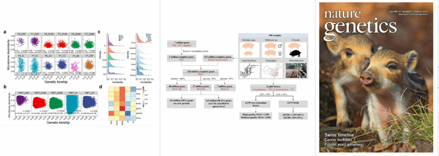 基礎研究取得重要進展,原創科研成果實現“質”“量”雙提升。黃路生院士團隊首次在農業動物(豬、牛、羊、雞等)中發現宿主基因組影響腸道菌群的因果基因突變,相關研究成果于2022年在Nature(《自然》)發表,這是中國畜牧學領域首篇在該刊發表的研究長文;關于哺乳動物(豬)環境適應性分子機理、豬腸道微生物基因集構建等領域的研究取得重要突破,相關成果先后在Nature Genetics、Nature Communications、PLOS Genetics、Molecular Biology and Evolution、Microbiome等國際頂級學術期刊上發表,為我國生豬種業“破卡”和模式豬實現“0到1”突破奠定了理論基礎。在水稻種質資源創新、蜜蜂生物學、亞熱帶植物譜系地理與遺傳多樣性等領域研究取得新進展,并在重要刊物發表。十年來,全校發表SCI(SSCI)期刊收錄論文由2012年的116篇增長了到2021年底的608篇。2012-2022年累計發表SCI(SSCI)期刊收錄論文4015篇,高被引論文31篇。2019年首次實現“植物學與動物學”“農業科學”兩個學科進入ESI全球前1%。