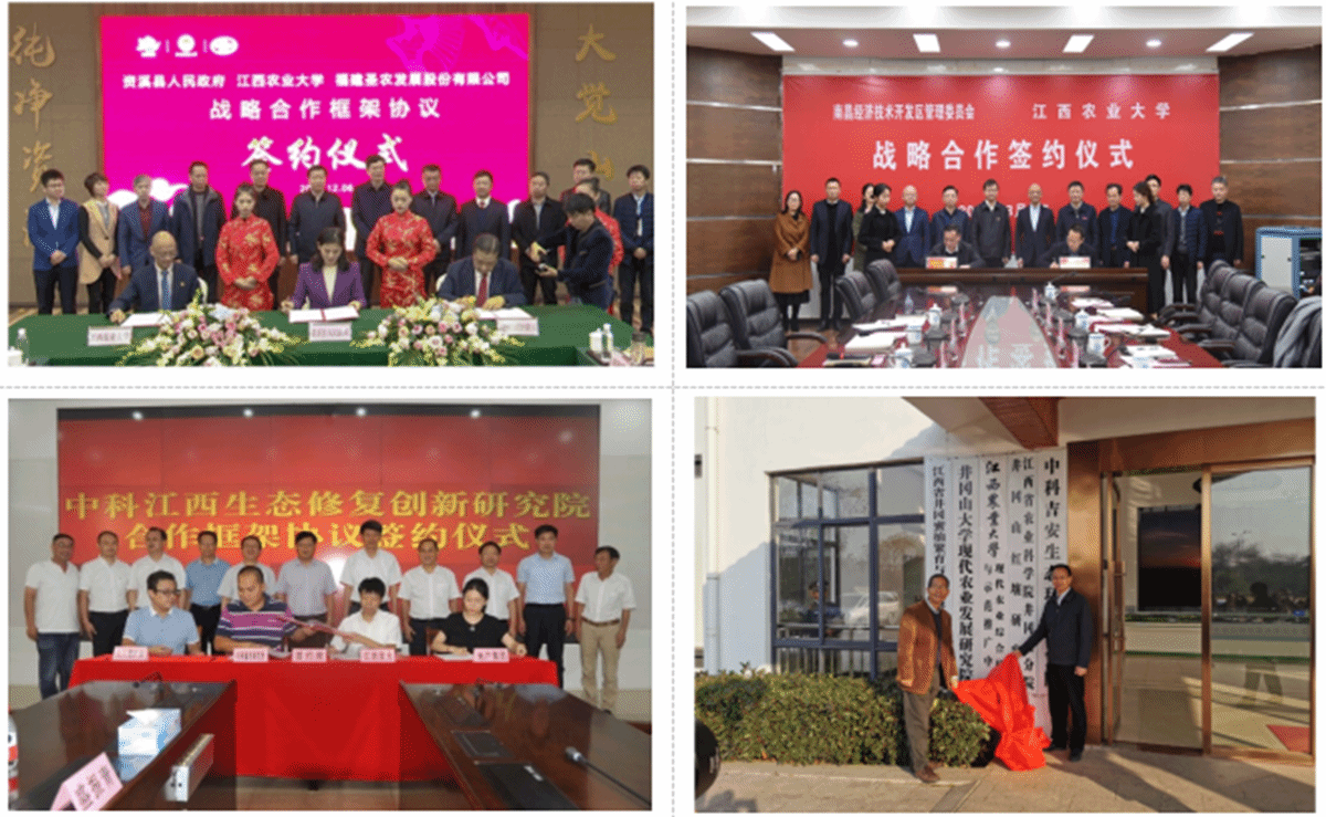 推進校地合作,促進縣域發展。十年來,學校先后與80余個縣(市、區)建立或深化了戰略合作關系,圍繞產業發展規劃、農業人才培養、鄉村治理和發展等方面提供了系列“江農方案”。作為技術支撐單位,學校入選農業農村部與資溪縣共建“全國農業科技現代化先行縣”試點單位;成立了科創飛地“江西農業大學井岡山現代農業綜合研發和示范中心”,全力支持井岡山農高區升級創建;與弋陽縣共建“方志敏鄉村振興研究院”,探索打造傳承紅色基因和高質量發展示范區;連續10年對口支援信豐、大余等原中央蘇區,為老區振興發展“把脈開方”。參與了61個自然保護區、森林公園和濕地公園建設,40個縣城市森林規劃,10個縣國土空間規劃,為共繪美麗江西新畫卷獻“技”獻策。