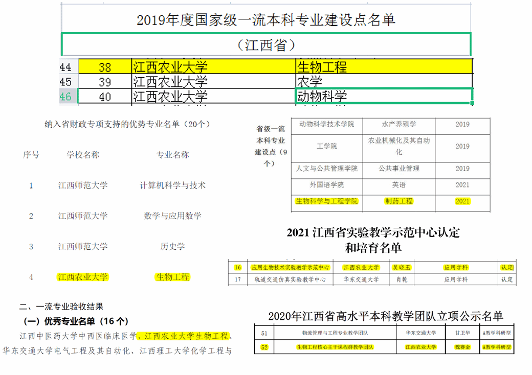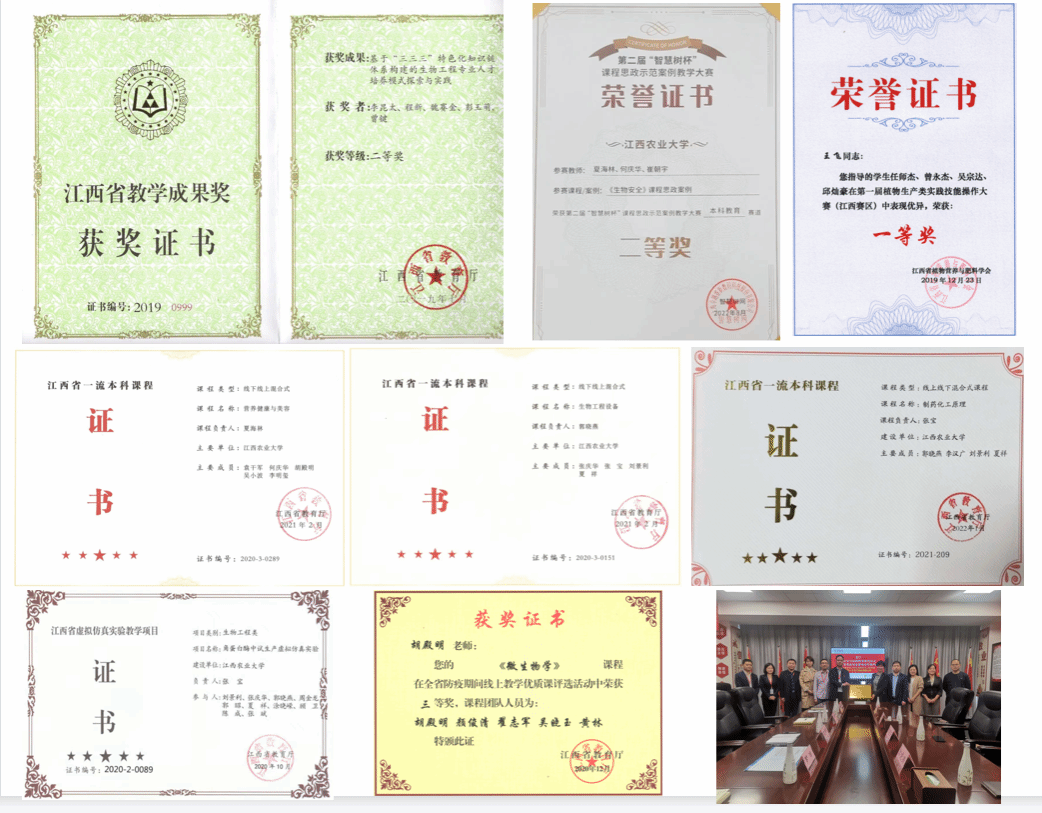 這十年,學院積極響應新工科、新理科建設理念,致力于培養生物與醫藥行業的卓越人才。生物工程專業在2015年江西省高校專業綜合評價中位列本專業全省第一,2018年入選“江西省一流優勢專業”,2019年入選國家一流專業建設點,2020年省一流專業驗收獲評“優秀”,為我校唯一驗收優秀的專業,2021年被評為江西省四星級專業,排名全省第二,2022年順利接受工程教育專業認證線上進校考查。制藥工程專業在2018年江西省專業綜合評價位居省內排名第二,是2019-2021年度校級重點建設專業,在2021年被評為江西省一流特色專業。生物技術專業為江西省特色專業、2019-2021年度校級重點建設專業、省內首設食用菌方向。十年來,學院堅持“教學優先、教師優先、學生優先”的工作原則和“教學是否滿意、教師是否滿意、學生是否滿意”的工作標準,樹立“以學生為中心、面向產出、持續改進”的教學理念。先后獲批省級以上教學研究課題41項、校級教學研究項目36項,榮獲省級教學成果獎3項,校級教學成果獎 11項;《生物工程設備》、《微生物學》、《制藥化工原理》和《營養健康與美容》等課程遴選為省級一流課程;“角蛋白酶中試發酵技術虛擬仿真實驗”獲批江西省虛擬仿真實驗教學項目;“生物工程核心主干課程群教學團隊”遴選為江西省高水平本科教學團隊;應用生物技術實驗教學示范中心獲批江西省實驗教學示范中心,先后投入近千萬元建立了省內高校唯一發酵中試車間和多功能發酵產品提取生產線以及應用生物技術實訓基地、食用菌基地等校內實訓基地;與國家生化工程技術研究中心(上海)、四特酒責任有限公司、江西李渡酒業有限公司、上海天慈國際藥業、江西一方天江藥業有限公司等27家單位共建了校外實習基地。學院狠抓學風建設,考研升學率始終名列全校前茅,2022年升學率高達45.28%。