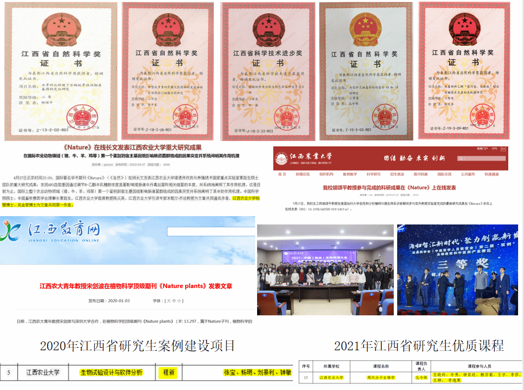這十年,學院高舉創新發展的理念旗幟,構建高層人才培育矩陣,學科建設取得高質量發展。生物學為江西省“十二五”重點學科與示范性碩士點,校“十三五”重點建設學科和省博士點建設學科;生物工程學科為校“十三五”重點學科和博士點建設學科,2017年生物工程一級學科獲批碩士授權點,填補了我省該學科沒有碩士學位授權點的空白。十年來,學院引進海內外高層次人才32人,10余名教師赴國外訪學,培育省主要學科學術和技術帶頭人3人、省高層次高技能領軍人才1人、省百千萬工程人選2人、省杰出青年基金獲得者3人,晉升博士生導師7,外聘兼職教授5人。憑借著前所未有的決心和耐心,學院筑巢引鳳,獲批江西省農業微生物資源開發與利用工程實驗室、江西省菌物資源保護與利用重點實驗室2個省級重點實驗室,南昌市發酵應用技術重點實驗室、南昌市生物資源保護與利用重點實驗室、南昌市動物病毒與基因工程重點實驗室、南昌市食藥用菌重點實驗室4個市級重點實驗室,以及7個校級研究機構等科研平臺。獲批國家級科研項目62項,省部級項目近100項,各類項目總經費近5000萬元。發表學術論文800余篇,其中,學院教師以第一作者身份在Nature等期刊上發表高水平論文200余篇。榮獲江西省科技成果二等獎3項、三等獎2項,歐美同學會(中國留學人員聯誼會)第二屆“雙創”大賽三等獎1項,江西省高校科技成果一、二、三等獎6項。授權國家發明專利12項,成果轉化費用上億元。獲批1門江西省級研究生優質課程和1門省級案例建設項目,出版專著3部,主編或副主編教材6部。研究生數量從10余人增加到206人,24人次獲批省研究生創新基金項目。學院研究生培養質量不斷提升,獲江西省優秀碩士畢業論文28篇。研究生一次就業率92%以上,大部分選擇繼續深造的碩士生進入了985院校或中科院攻讀博士。學院強化對外學術交流,分別承辦2018中國微生物學會年會、2021中國(南昌)生物資源大會等大型學術會議,參加國際和國內學術會議年均近100人次。