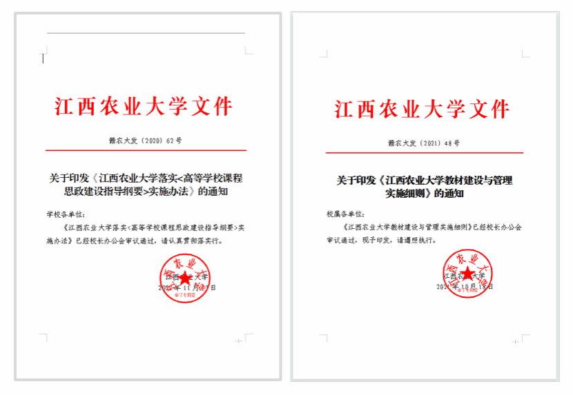 持續(xù)強(qiáng)化課程思政建設(shè)。思想政治教育貫穿人才培養(yǎng)全過(guò)程,全面推進(jìn)學(xué)校課程思政建設(shè),出臺(tái)《江西農(nóng)業(yè)大學(xué)落實(shí)< 高等學(xué)校課程思政建設(shè)指導(dǎo)綱要>實(shí)施辦法》。獲批教育部課程思政示范課程1門,教育部課程思政教學(xué)名師和團(tuán)隊(duì)1個(gè),省級(jí)課程思政示范課程2門,校級(jí)課程思政示范課程30門,編纂《江西農(nóng)業(yè)大學(xué)課程思政典型案例匯編》即將出版。