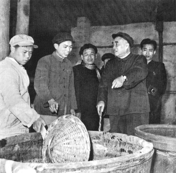 圖為1962年3月朱德委員長在共大云山分校參觀楊梅酒廠