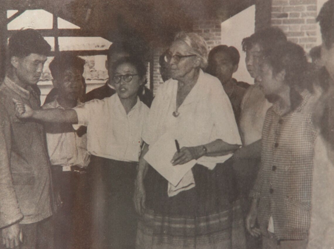 圖為1960年5月美國著名作家安娜?路易斯?斯特朗在共大云山分??疾觳稍L