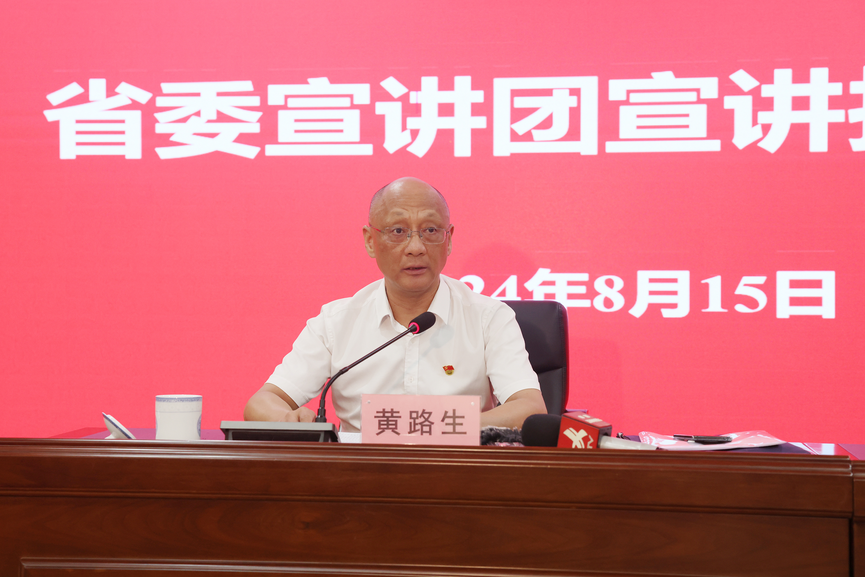 宣講會上,黃路生五個方面對黨的二十屆三中全會精神進行了系統全面的宣講。一是充分認識黨的二十屆三中全會的重大意義。全會是在以中國式現代化全面推進強國建設、民族復興偉業的關鍵時期舉行的一次十分重要的會議,鮮明宣示了將改革進行到底的堅定意志,系統擘畫了進一步全面深化改革的宏偉藍圖,充分激發了推進中國式現代化的強勁動力。二是深刻領會中央政治局報告的主要精神。習近平總書記代表中央政治局作的工作報告,既是一份統攬全局、求真務實的好報告,也是一份厚重提氣、來之不易的成績單,更是一份提信心、暖人心的新答卷。一年多來,中央政治局認真落實黨的二十大和二十屆一中、二中全會精神,有效推動經濟發展實現回升向好,推進全面深化改革實現新突破,千方百計辦好民生實事,教育科技人才基礎性戰略性支撐作用更加顯著,高水平統籌發展和安全,縱深推進全面從嚴治黨。三是正確把握進一步全面深化改革的總體要求。要把握進一步全面深化改革、推進中國式現代化的全會主題;要把握進一步全面深化改革的指導思想;要把握繼續完善和發展中國特色社會主義制度,推進國家治理體系和治理能力現代化的改革總目標;要把握進一步全面深化改革需要遵循的“六個堅持”的重大原則。四是正確把握進一步全面深化改革的重大舉措。全會審議通過的《決定》,提出了一系列重大改革舉措,覆蓋了推進中國式現代化方方面面,是進一步全面深化改革的全景圖。五是全力以赴抓好全會精神的貫徹落實。要切實把學習宣傳貫徹全會精神作為當前和今后一段時期的重大政治任務;要把加強黨的領導作為全面深化教育綜合改革的首要原則和根本保證;要以釘釘子精神抓好各項改革任務和發展目標的落地見效。