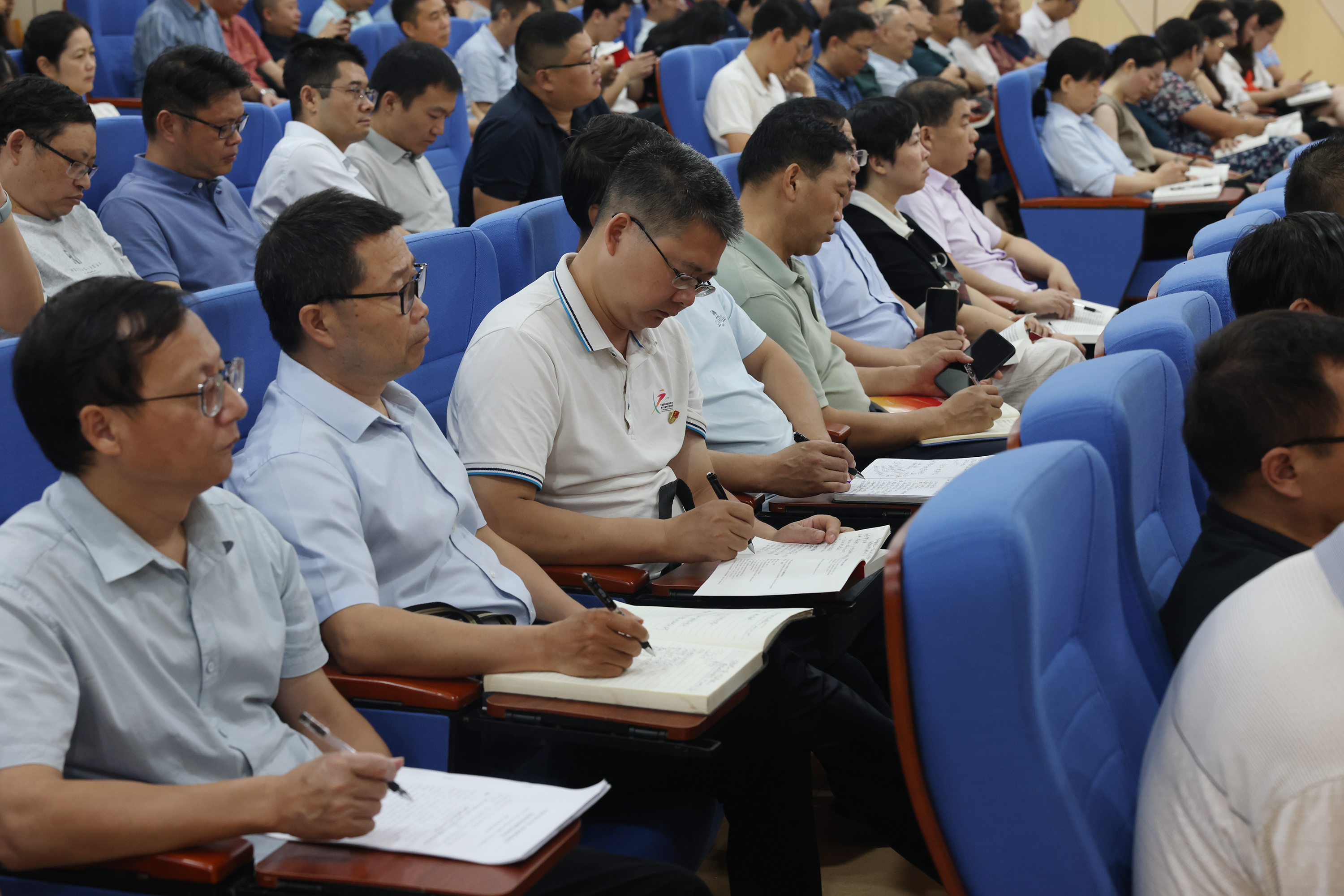 8月15日上午,校舉辦學習貫徹黨的二十屆三中全會精神省委宣講團宣講報告會,省委宣講團成員、校黨委書記黃路生院士作宣講報告,校領導,副處級以上領導干部附屬單位主要負責人各學院輔導員、思政課教師、離退休老同志及在校大學生代表200人現場聆聽副校長樊后保主持報告會。