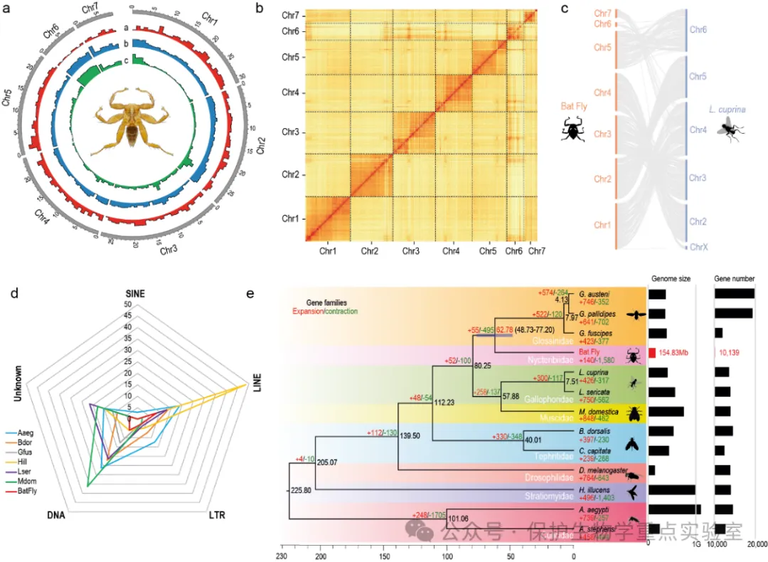 研究通過蝠蠅的基因組組裝和比較分析,揭示了蝠蠅在適應(yīng)寄生生活過程中發(fā)生的分子水平的適應(yīng)性演化,如與視覺、飛行和晝夜節(jié)律相關(guān)的基因。這些發(fā)現(xiàn)為理解寄生蟲的適應(yīng)性演化機制提供了重要的基因組學數(shù)據(jù)支持。