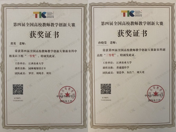 7月27日至31日,由教育部高等教育司指導、中國高等教育學會主辦的第四屆全國高校教師教學創新大賽決賽在電子科技大學落幕。我校黃英教師(團隊)榮獲全國一等獎,是本屆全國新農科中級及以下組唯一的一等獎;孫曉棠教師(團隊)榮獲全國新農科副高組三等獎。
