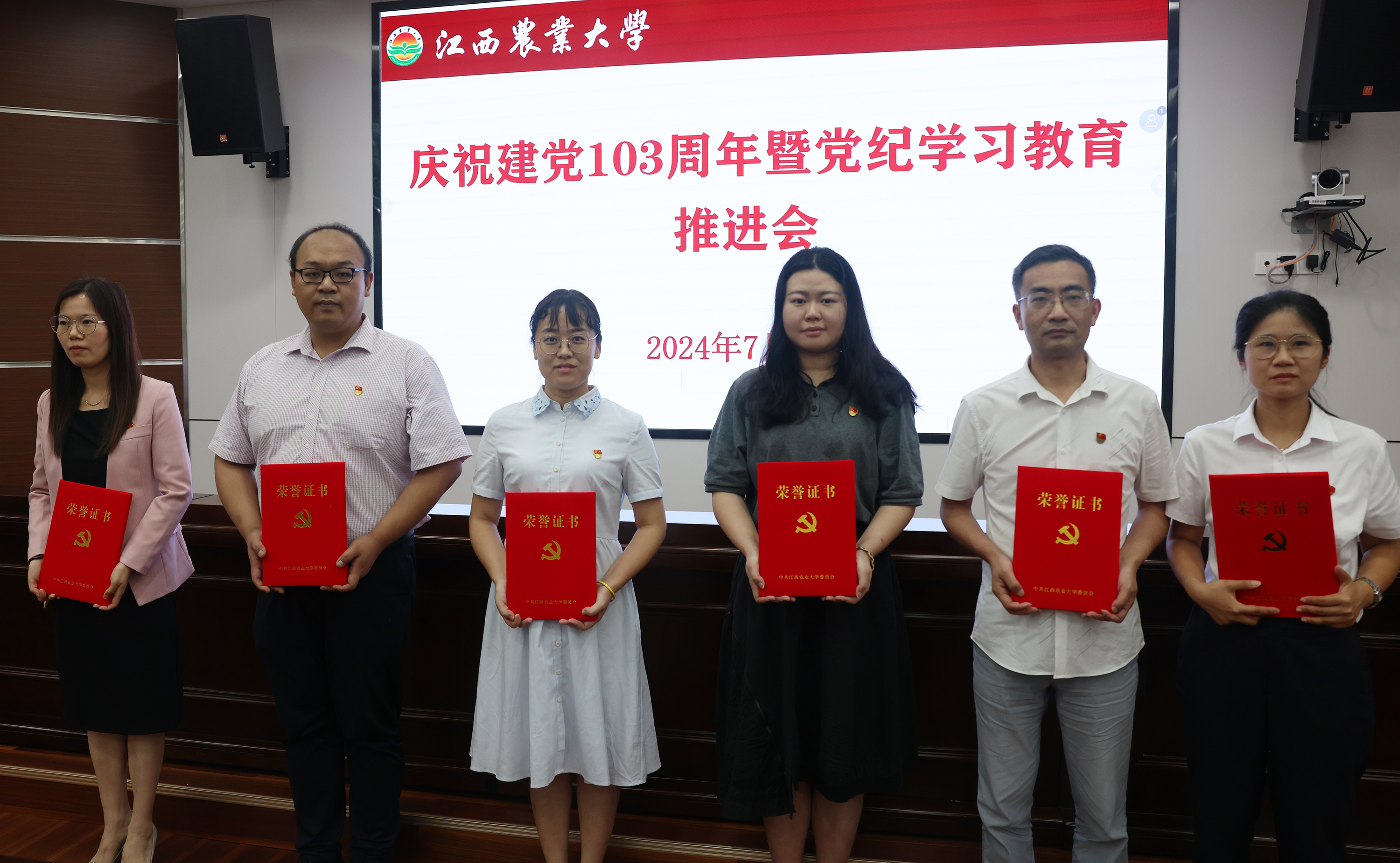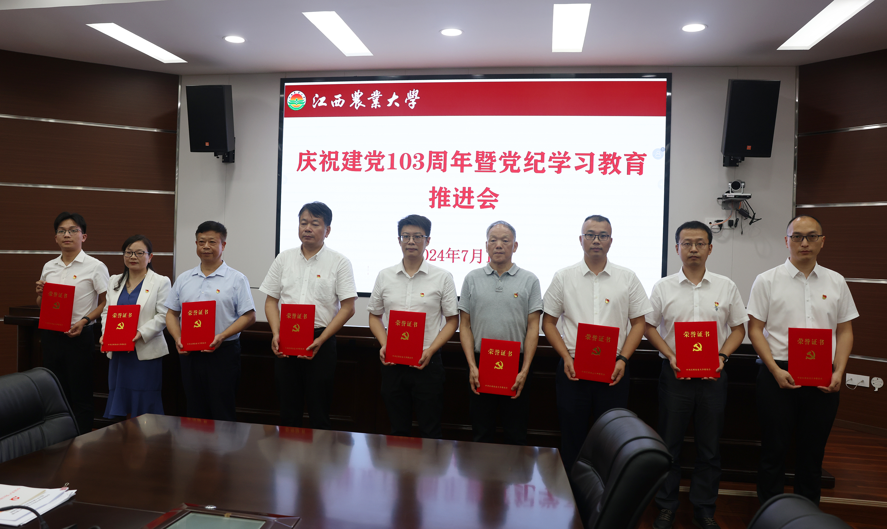 校黨委書記黃路生院士、校長魏輔文院士為“光榮在黨50年”老黨員代表頒發紀念章。副校長樊后保宣讀《關于表彰優秀共產黨員、優秀黨務工作者和先進基層黨組織的決定》,副校長曾志將、王文君、游金明先后為先進基層黨組織、優秀共產黨員、優秀黨務工作者受表彰對象代表頒發獎牌或證書。
