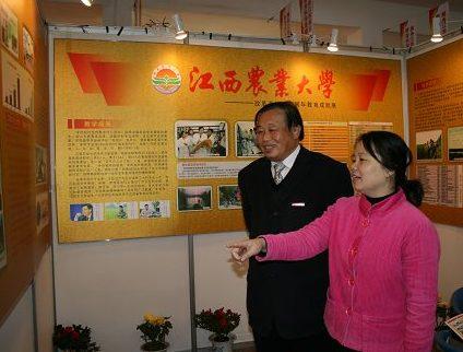 11月21日上午,由省委教育工委、省教育廳在省展覽館舉辦的“改革開放三十周年江西教育成就展”開幕。上圖為江西省人大常委會(huì)副主任蔣如銘和副省長孫剛在我校展廳參觀;下圖為王華林副校長在我校展廳參觀。