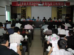 本報訊(記者 小郭)8月4、5日,2008年暑期科技工作報告研討會在梅嶺百喜山莊召開。校領導石慶華、曹鐘朗、池澤新、黃路生、潘曉華、胡春曉、陳金印、許斌華及來自各學院、各職能部門的有關負責同志60余人參加了會議。