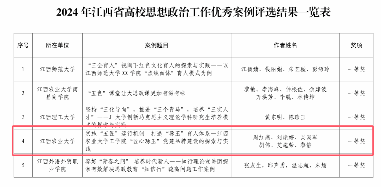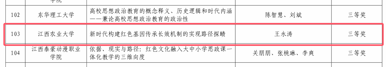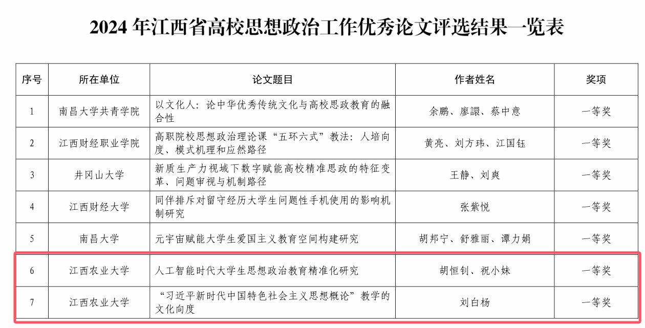 日前,2024年度全省高校思想政治工作優秀論文、優秀案例評選結果揭曉,我校共獲全省高校思想政治工作優秀論文一等獎2篇,三等獎2篇;全省高校思想政治工作優秀案例一等獎1項,二等獎1項。